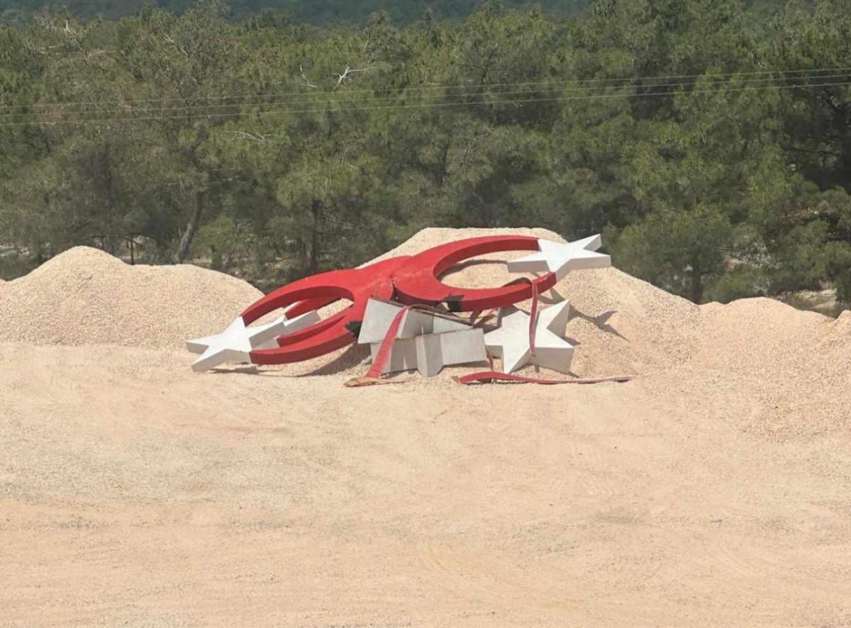 Ay yıldızlı anıt sökülerek ormanlık alana atıldı