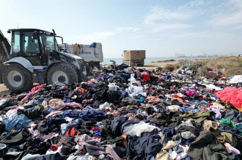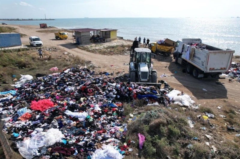 İhbar üzerine Akdeniz Belediyesi Çevre Koruma ve Kontrol Müdürlüğü ekipleri, sahile dökülen tonlarca kıyafet, kumaş ve tekstil atıklarını kepçeyle kamyonlara yükleyip, bölgeden kaldırdı.