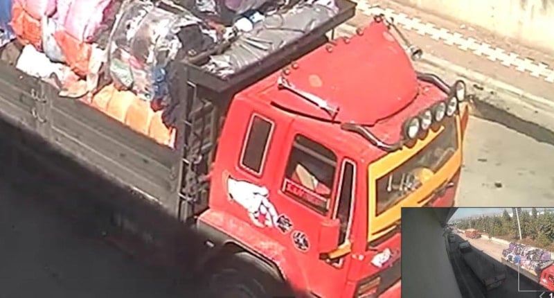 Kamyonun giysi ve tekstil atığı bıraktığı anlar ise güvenlik kamerasına yansıdı.