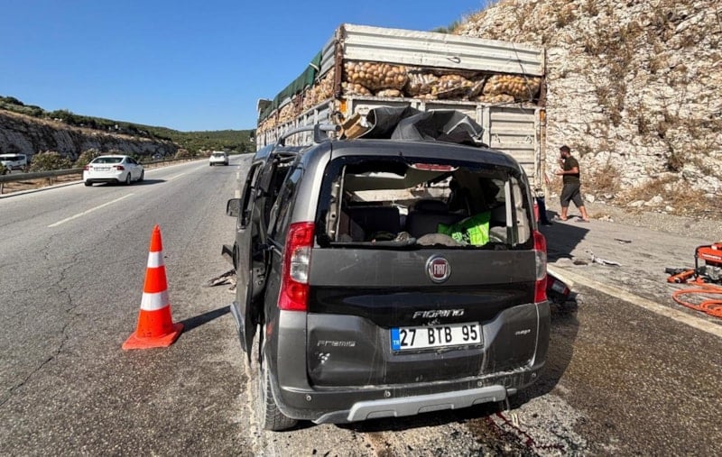 Çarpışmanın etkisiyle hafif ticari araç, tırın altına girdi.