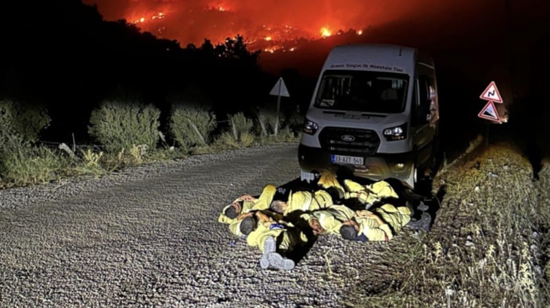 Öte yandan gece yorgun düşen bazı orman ekipleri ise yolda yatarak dinlendi.
