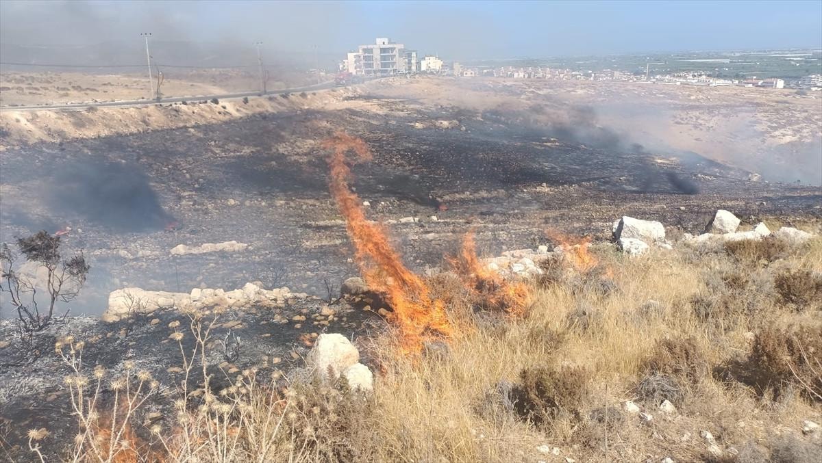 Mersin'in Silifke ilçesi Mukaddem Mahallesi'nde ikametlerin yakınındaki kuru otlar henüz belirlenemeyen nedenle alev aldı.
