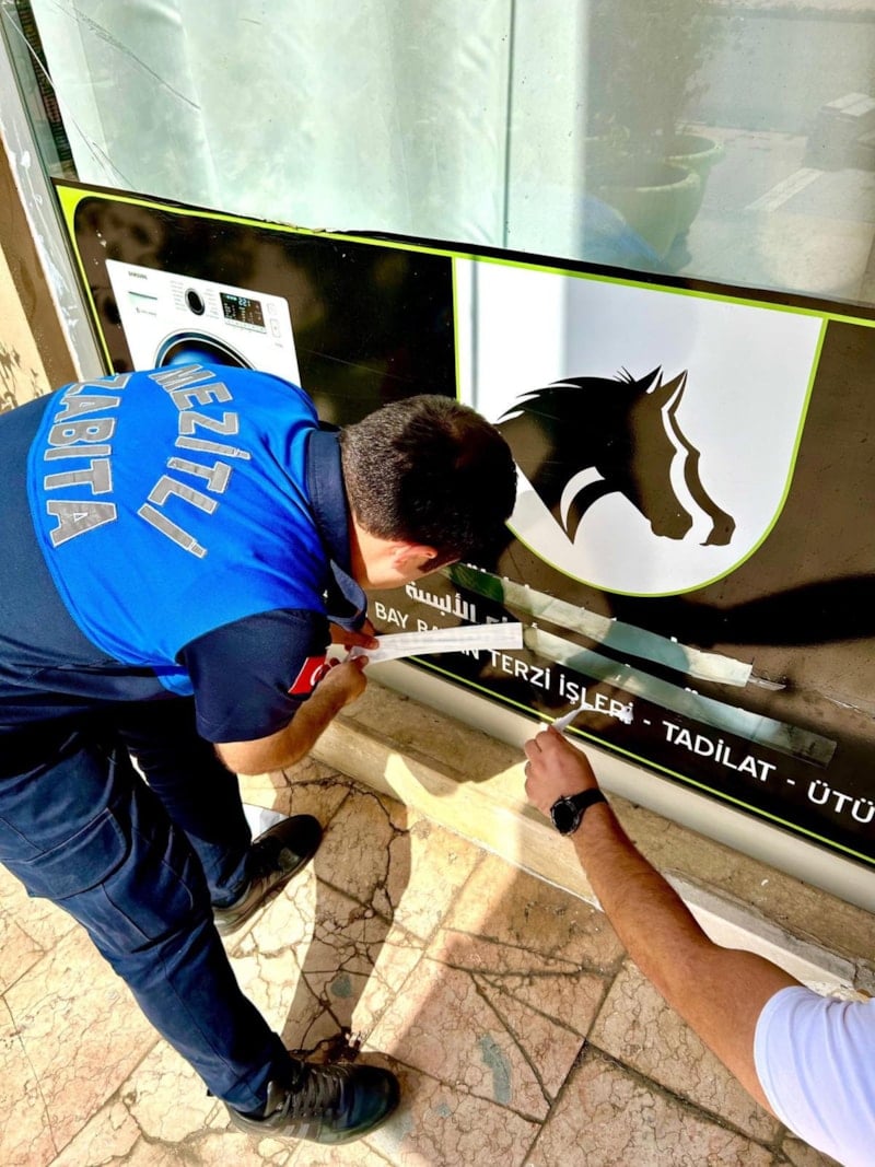 Başta Mezitli ilçesi olmak üzere büyükşehir ve ilçe belediyelerin aldığı kararla zabıta ekipleri tarafından yapılan denetimlerde, Türk Harf Kanunu'na aykırı olan tabelalar tespit edildi.