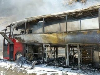 Durdurduğu otobüste de alevleri söndürecek tüp bulamayan sürücünün imdadına çevredeki vatandaşlar yetişti.