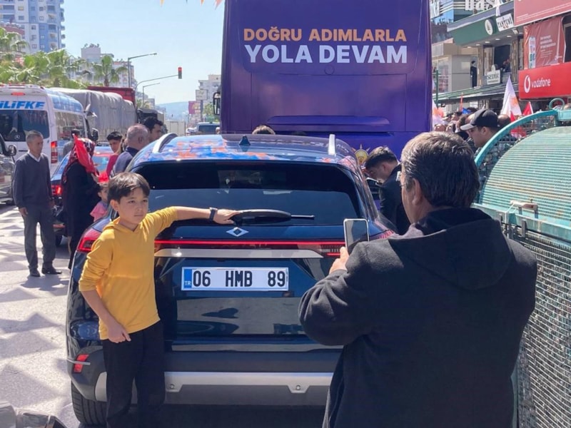 AK Parti'nin Mersin milletvekili adayı olan Hazine ve Maliye Bakanı Nureddin Nebati, Mersin'in Erdemli ilçesine Togg'la geldi.