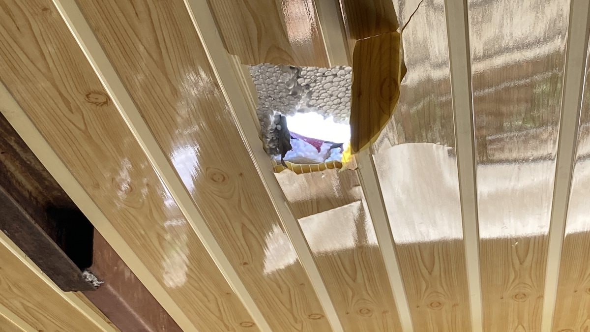 Patlamayla birlikte havalanan kaya parçalarından biri, Ali Gül'e ait tek katlı müstakil evin damından içeri girdi.