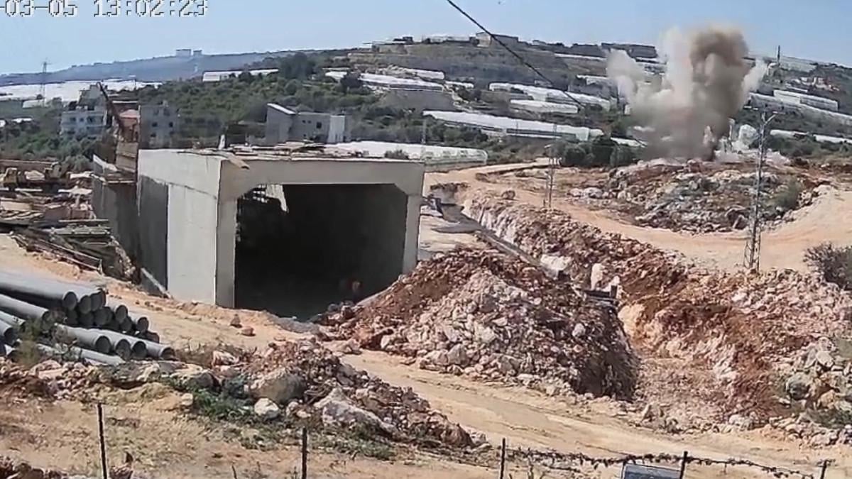 Görüntülerde patlama anıyla birlikte ortaya çıkan toz bulutu ve kaya parçalarının fırlaması yer aldı.