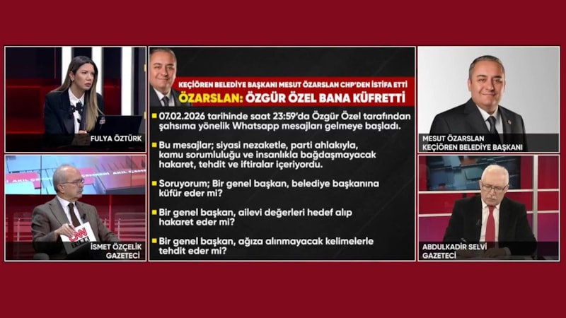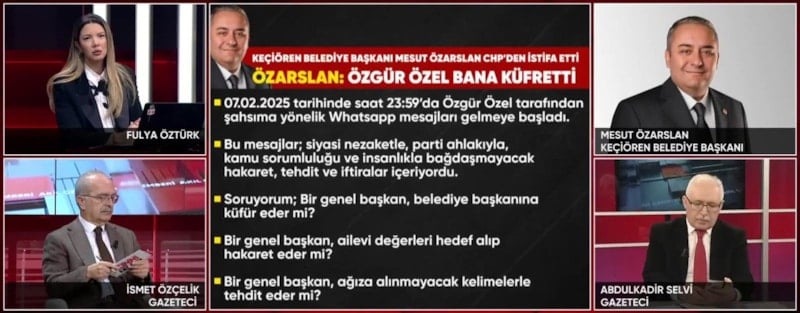 CHP'den istifa ettiğini duyuran Keçiören Belediye Başkanı Mesut Özarslan, CHP Genel Başkanı Özgür Özel'in kendisine yönelik hakaret ve küfürlerinin içeriklerini anlatarak, "Sen hangi hakla benim anama sövüyorsun" çıkışında bulundu.