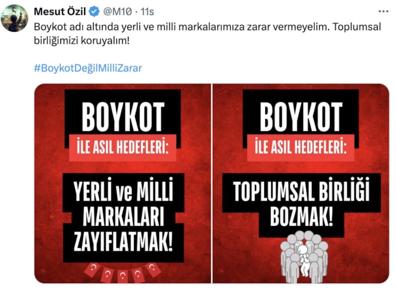 Yapılan bu boykot çağrısına sessiz kalmayan Mesut Özil, sosyal medya hesabı üzerinden paylaşım yaptı.