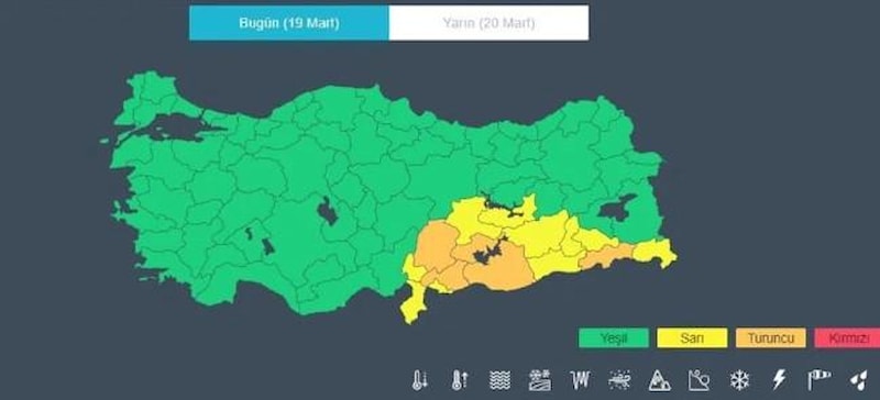 Kahramanmaraş, Adıyaman, Gaziantep, Şanlıurfa ve Şırnak da turuncu kodla uyarılan illerin arasında aldı.