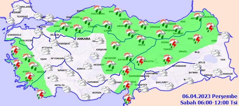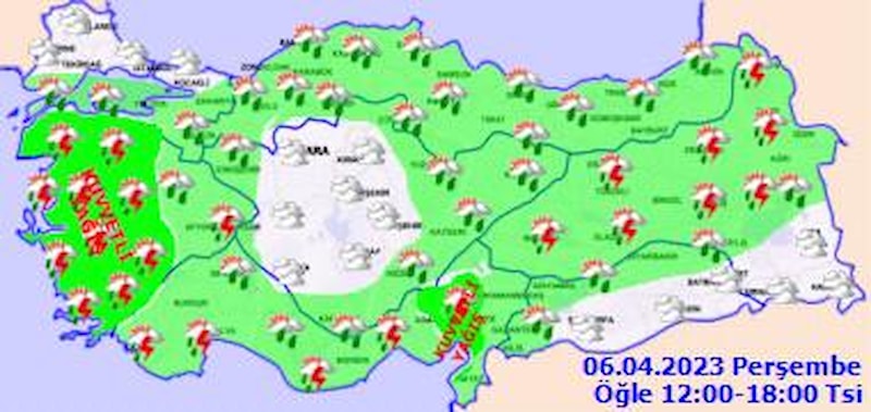 Meteoroloji Genel Müdürlüğü'nden yapılan açıklamaya göre 6 Nisan Perşembe günü sağanak ve gök gürültülü sağanağın Osmaniye, Adana'nın kuzey ilçeleri, Hatay'ın Erzin, Dörtyol ve Payas ilçeleri, Kahramanmaraş'ın Andırın ilçesi ile Osmaniye'nin tamamında kuvvetli olması bekleniyor.