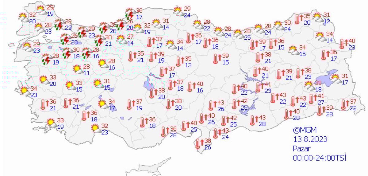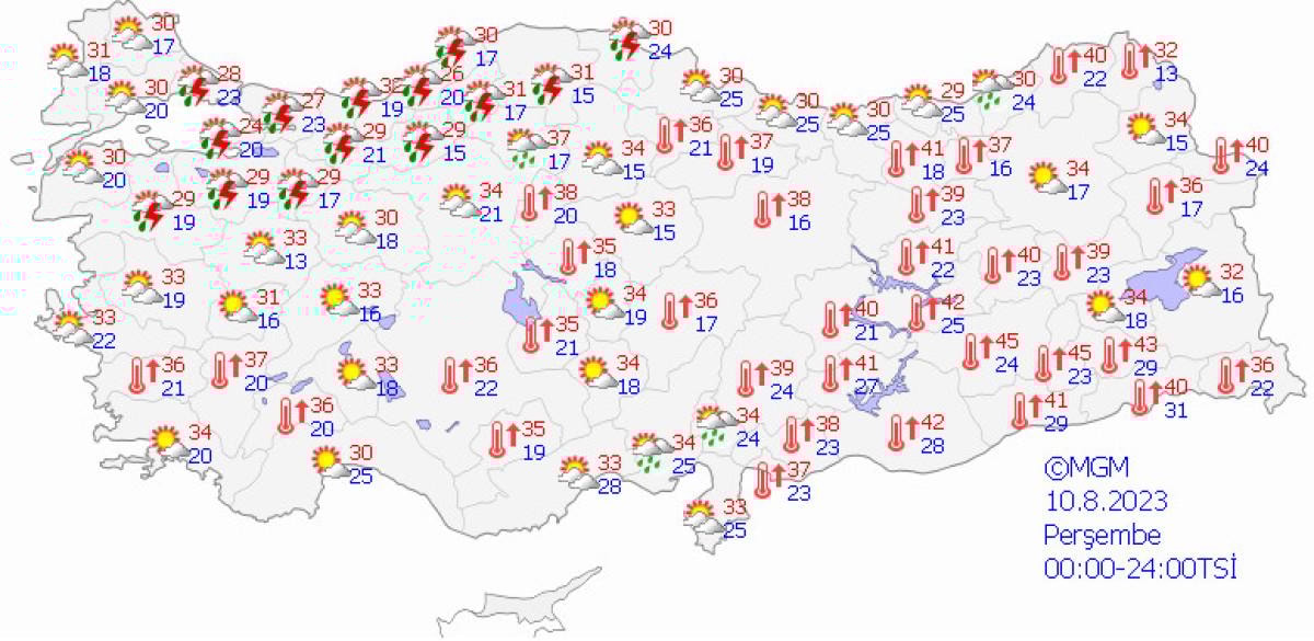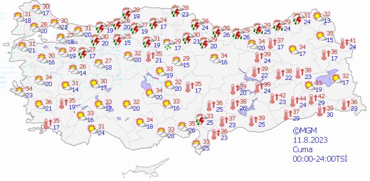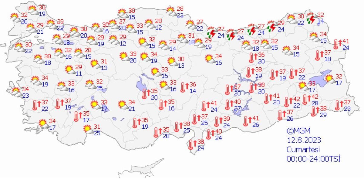 Ankara'da bugünden itibaren bu 3-4 derecelik sıcaklık düşüşü var. Ankara'da yağış beklentimiz yok. İstanbul'da yine sıcaklıklar mevsim normallerine indi; 28-30 dereceler arasında. İzmir'deki sıcaklıklar da 34-35 dereceler civarında seyretmeye devam edecek.
