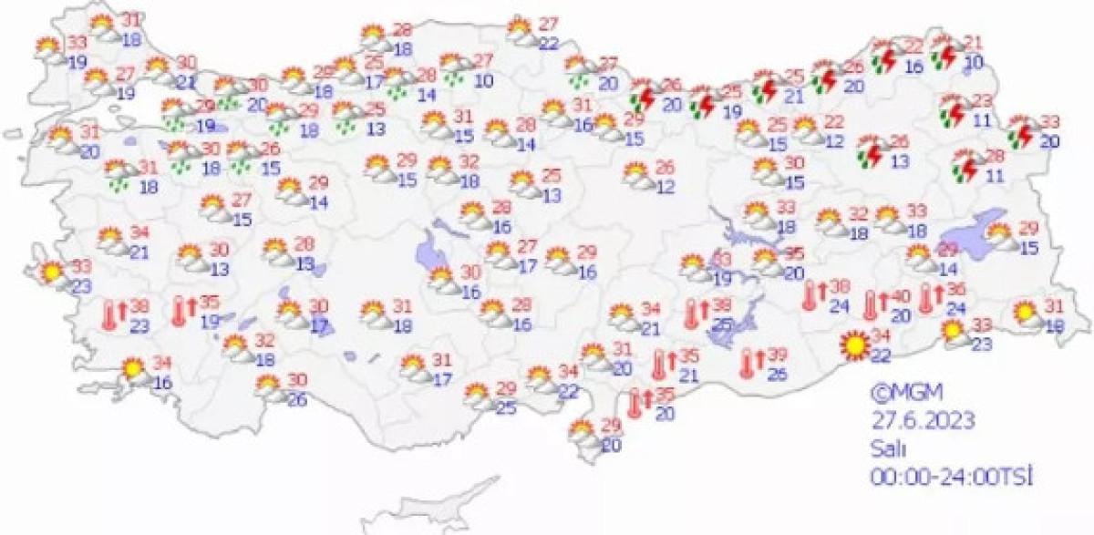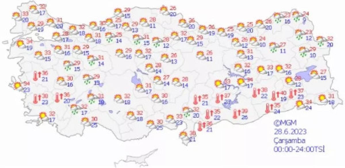 28 Haziran bayramın ilk günü ise yurt geneli adeta sıcaklıktan kavrulacak. Öyle ki bazı bölgelerde sıcaklık seviyesinin 40 dereceye kadar çıkması de bekleniyor. Doğu Karadeniz ise bayramı hafif yağışlı geçirecek.