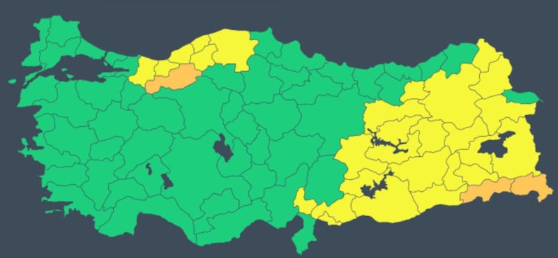 Ayrıca Meteoroloji tarafından 31 ile sarı ve turuncu kodlu uyarı yapıldı.