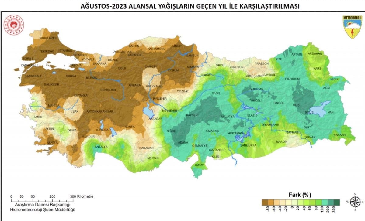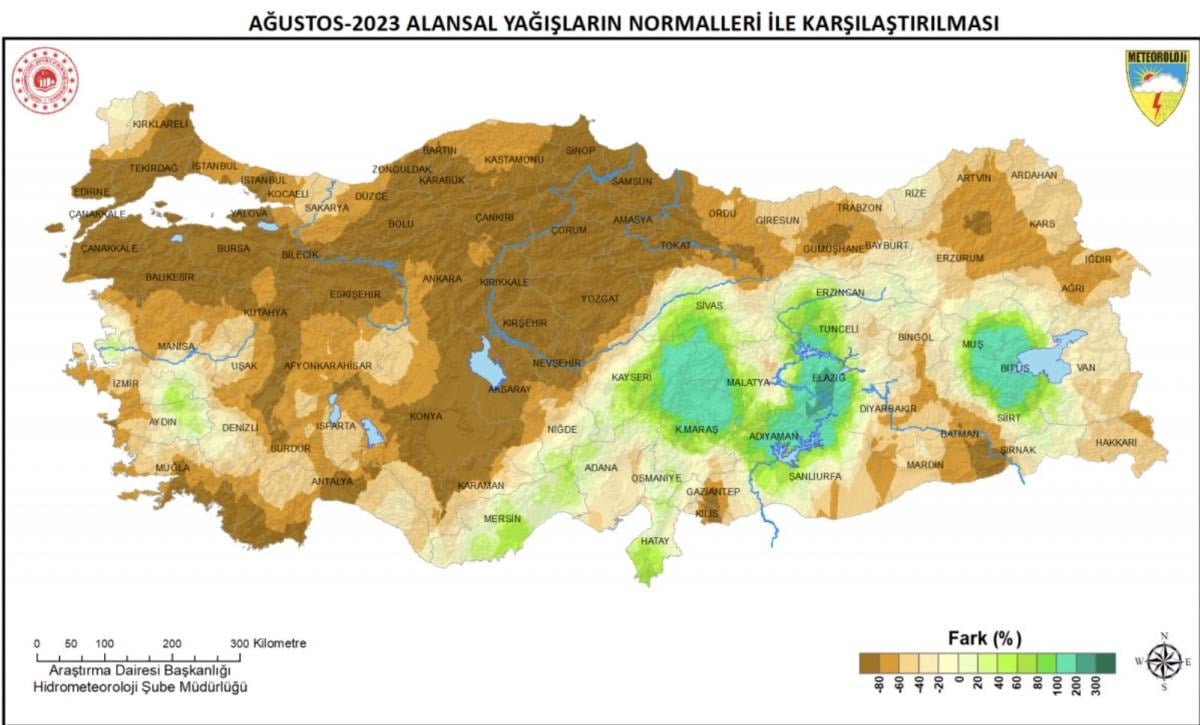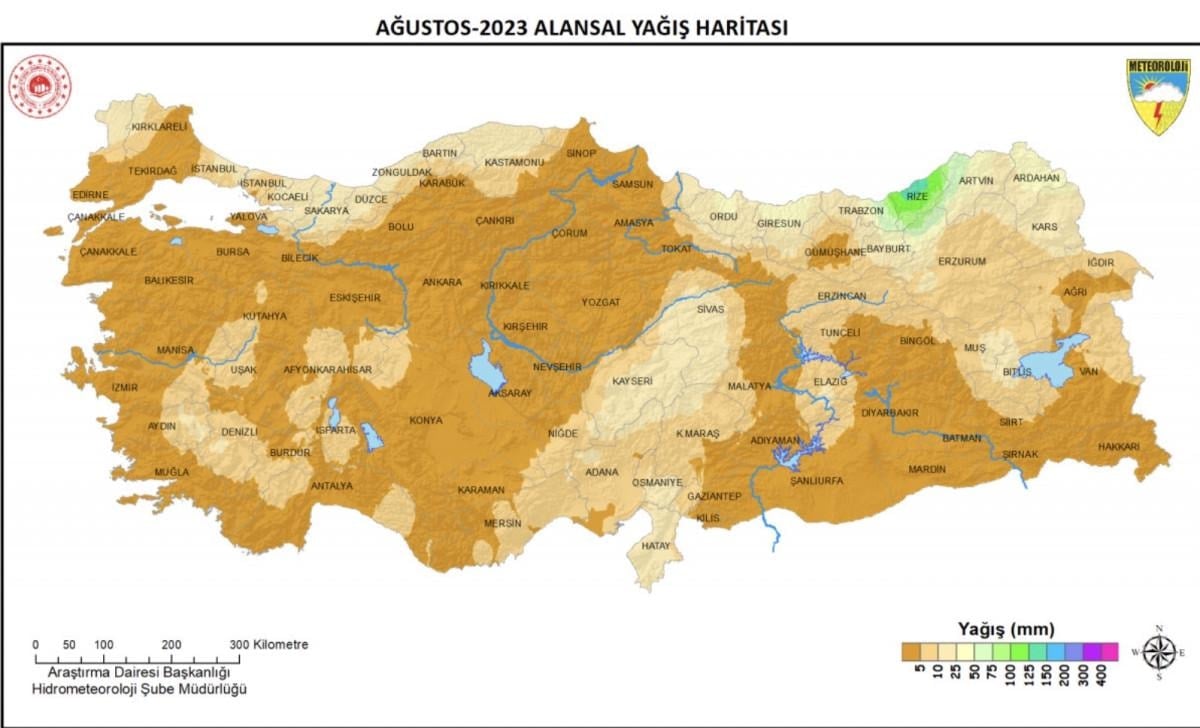 Meteoroloji Genel Müdürlüğü'nün 2023 Ağustos yağışlarına yönelik hazırladığı rapora göre, Türkiye geneli ağustos ayı yağışları, normalinin ve geçen yıl ağustos ayı yağışlarının altında gerçekleşti.