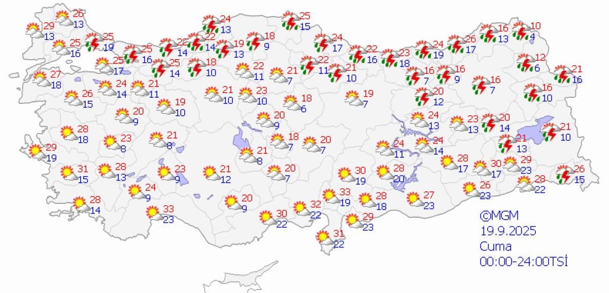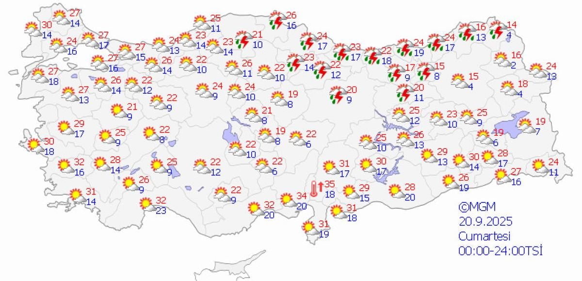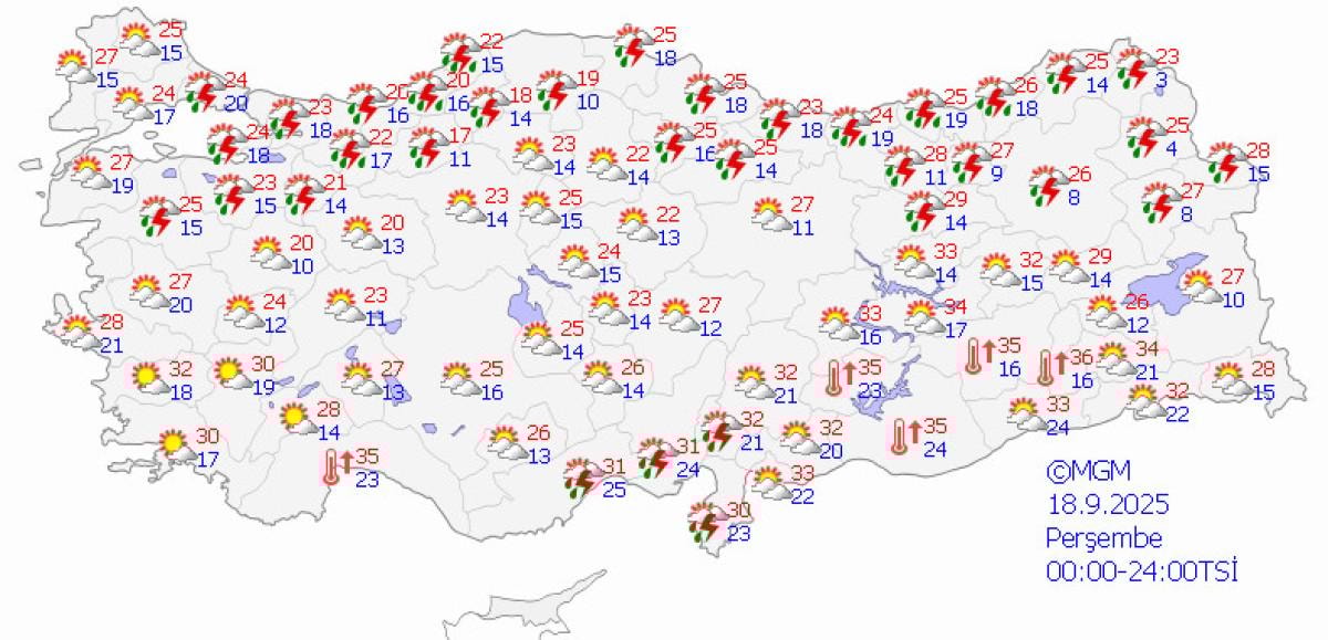 Meteoroloji Genel Müdürlüğü, hava durumu raporunu paylaştı.
