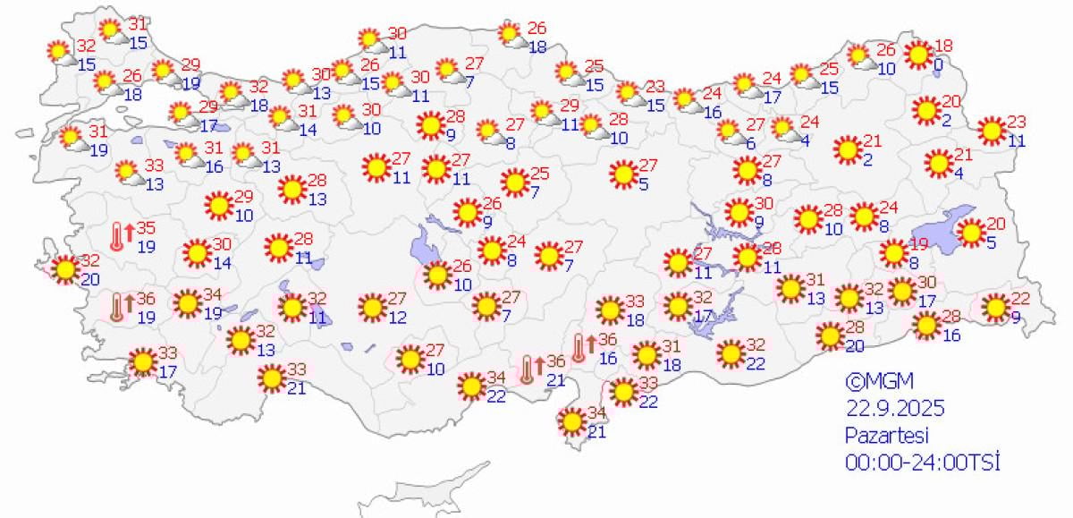 Hava sıcaklığının, doğu kesimlerde mevsim normallerinin 1-3 derece üzerinde, iç kesimlerde normallerinin 1-3 derece altında, diğer yerlerde mevsim normalleri civarında seyretmesi bekleniyor.