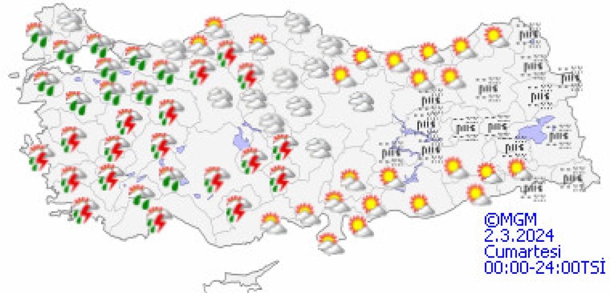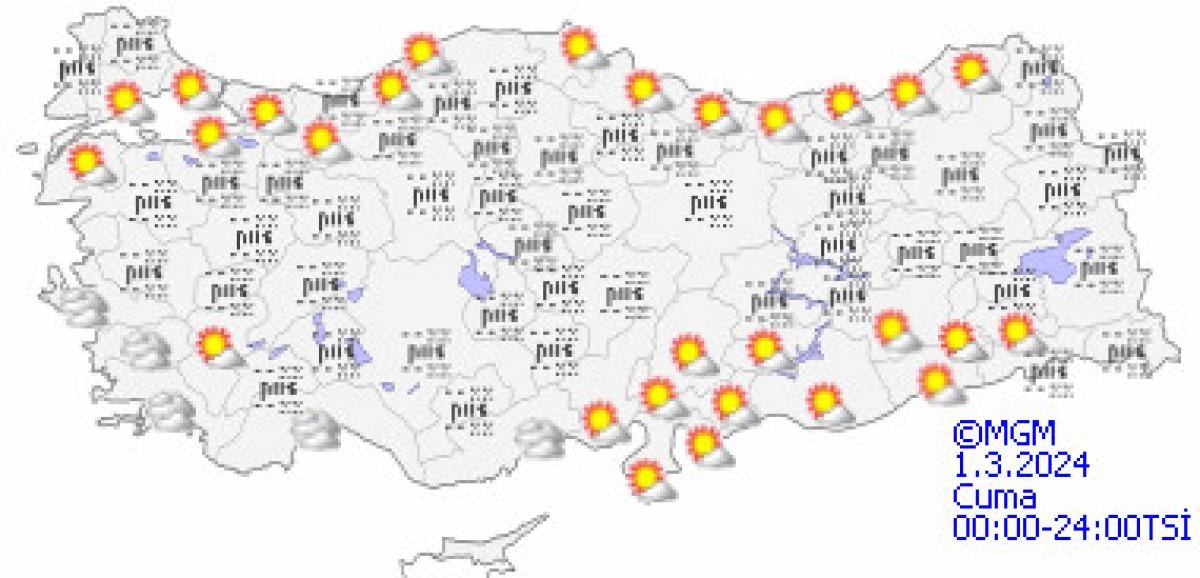 Açıklamalara göre yurdun batı ve kuzey kesimlerinde havanın; yer yer parçalı bulutlu, diğer yerlerin az bulutlu ve açık geçeceği tahmin ediliyor.