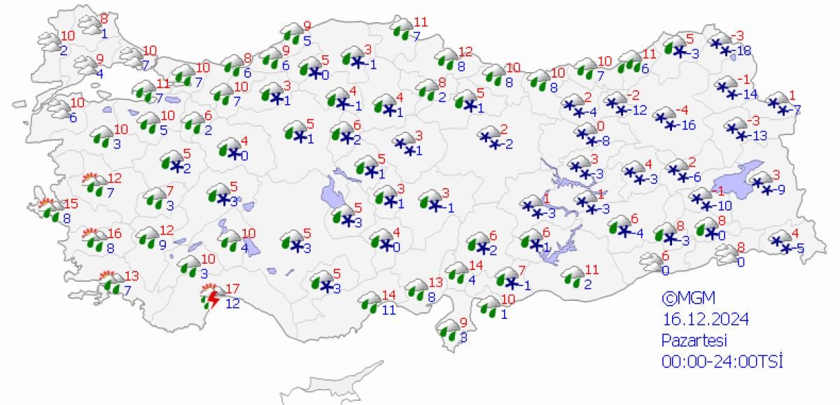 Yeni haftanın ilk günü, yurt genelinde yağışlı hava hakim olacak. İç kesimlerde karla karışık yağmur ve kar beklenirken, kıyılarda yağmur var.