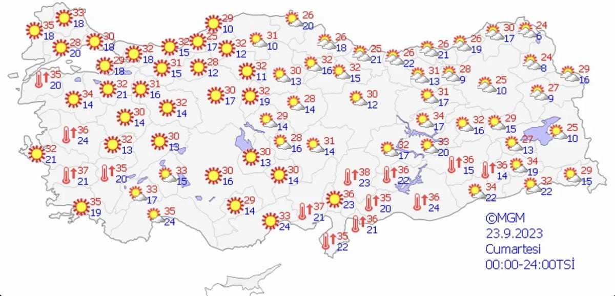 Meteoroloji'den alınan verilere göre cumartesi günü yurdun batı ve güney kısımlarında kavurucu sıcaklar etkisini hissettirecek.