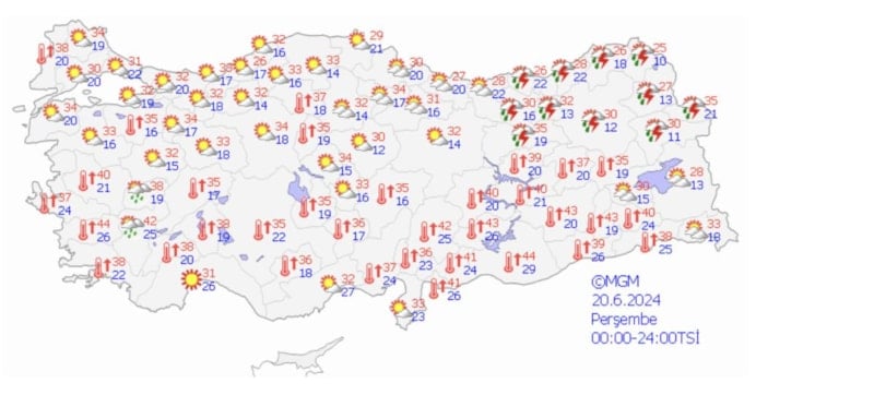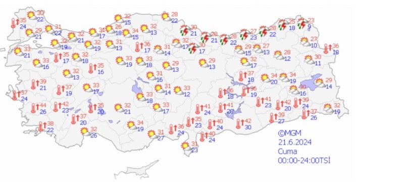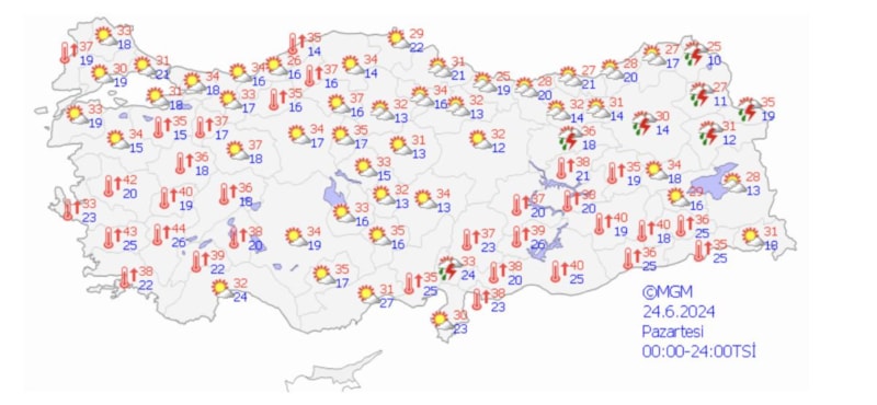Erzurum 31, Malatya açık 39 derece.