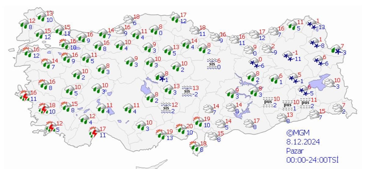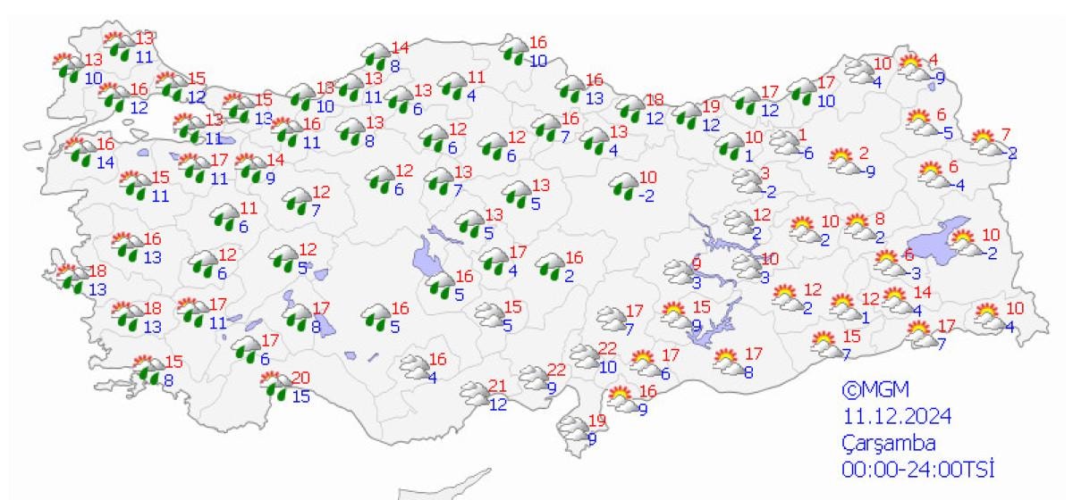 Meteoroloji Genel Müdürlüğü tarafından yapılan son tahminlere göre: