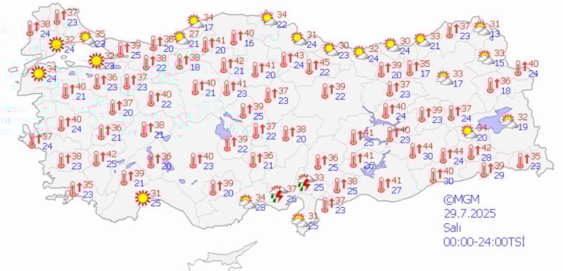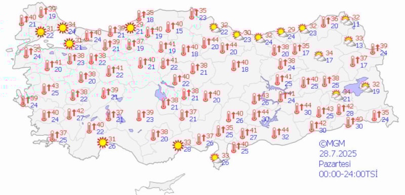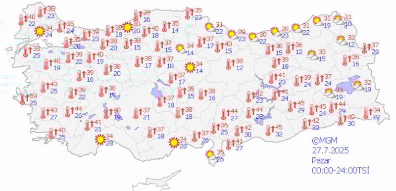 Ankara'da termometrelerin 40 dereceyi görmesi beklenirken, İstanbul'da 35, İzmir'de ise 40 derece sıcaklık tahmin ediliyor.
