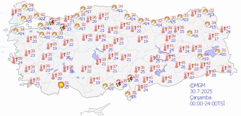 Yüksek sıcaklıkların batı bölgelerinde 30 Temmuz Çarşamba, doğu kesimlerde ise 2 Ağustos Cumartesi gününden itibaren etkisini kaybetmesi bekleniyor.
