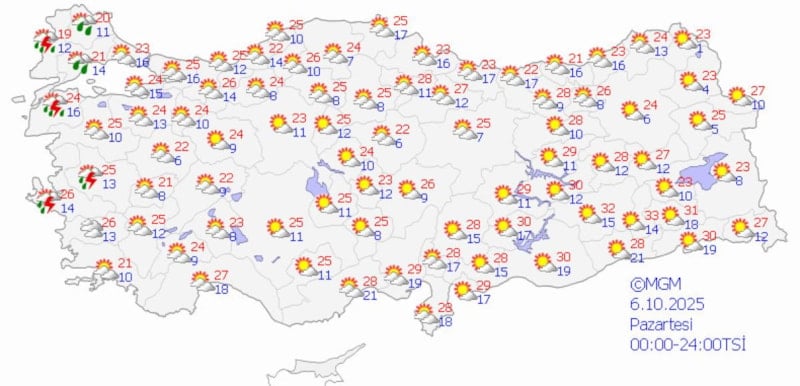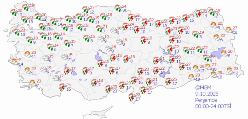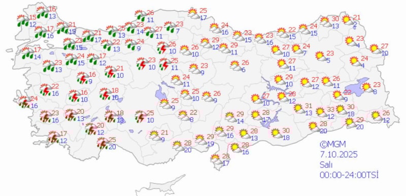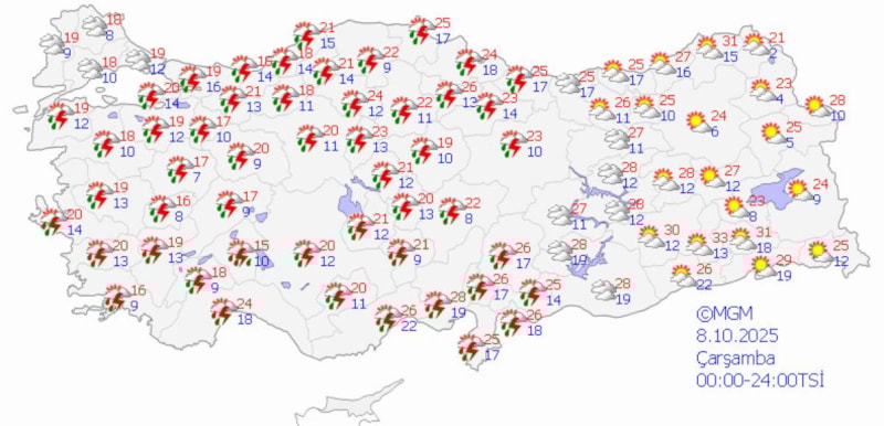 Benzer şekilde İzmir ve tüm Ege kıyıları da sistemin merkezinde yer alacak; şiddetli sağanaklar, kuvvetli rüzgar ve fırtına uyarısı yapıldığından sel ve taşkınlara karşı azami dikkat gerekiyor.