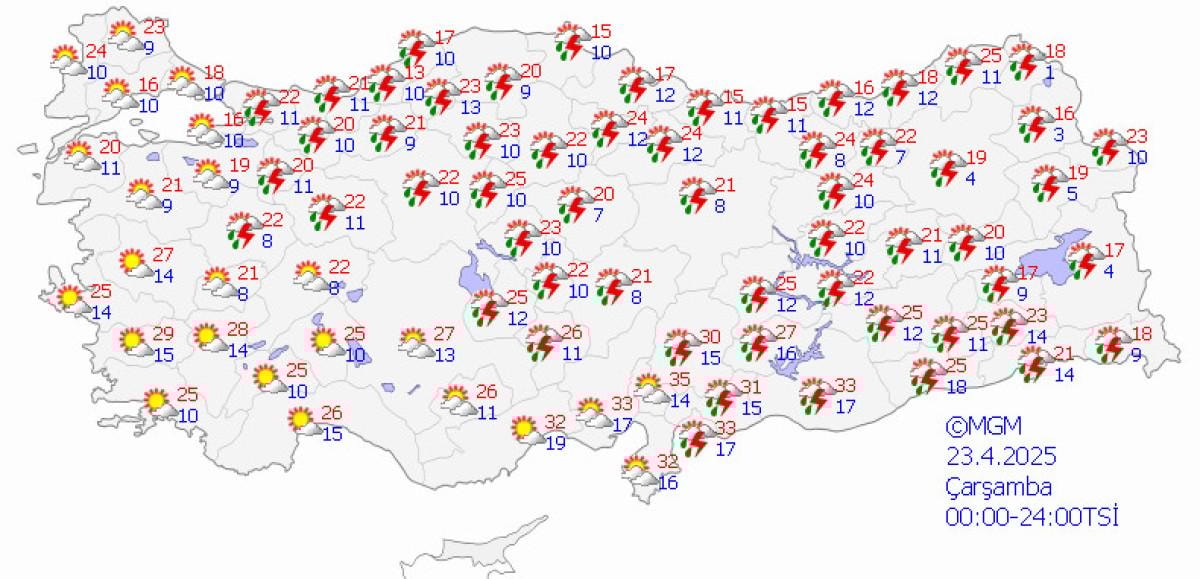 23 Nisan Çarşamba günü, batıda güneşli hava sürüyor.