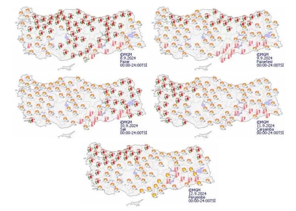 Pazartesi, çarşamba ve perşembe için gök gürültülü sağanak yağış uyarısı yapıldı.