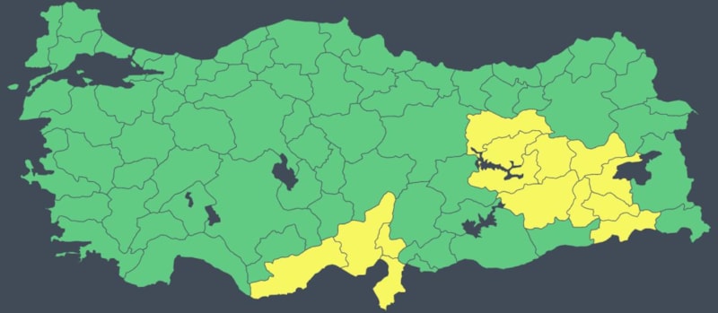 Sarı alarm verilen iller şöyle sıralandı: