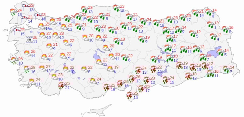 Yapılan açıklamaya göre akşam saatlerine kadar Diyarbakır, Batman, Siirt, Şırnak, Bitlis, Muş, Bingöl, Tunceli, Elazığ ve Erzincan çevrelerinde yerel kuvvetli sağanak ve yer yer gök gürültülü sağanak görülecek.