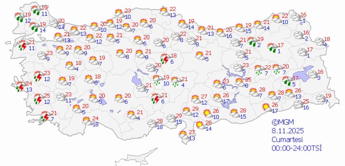 - Meteoroloji Genel Müdürlüğü, 20 ilde sağanak yağış beklendiğini açıkladı.