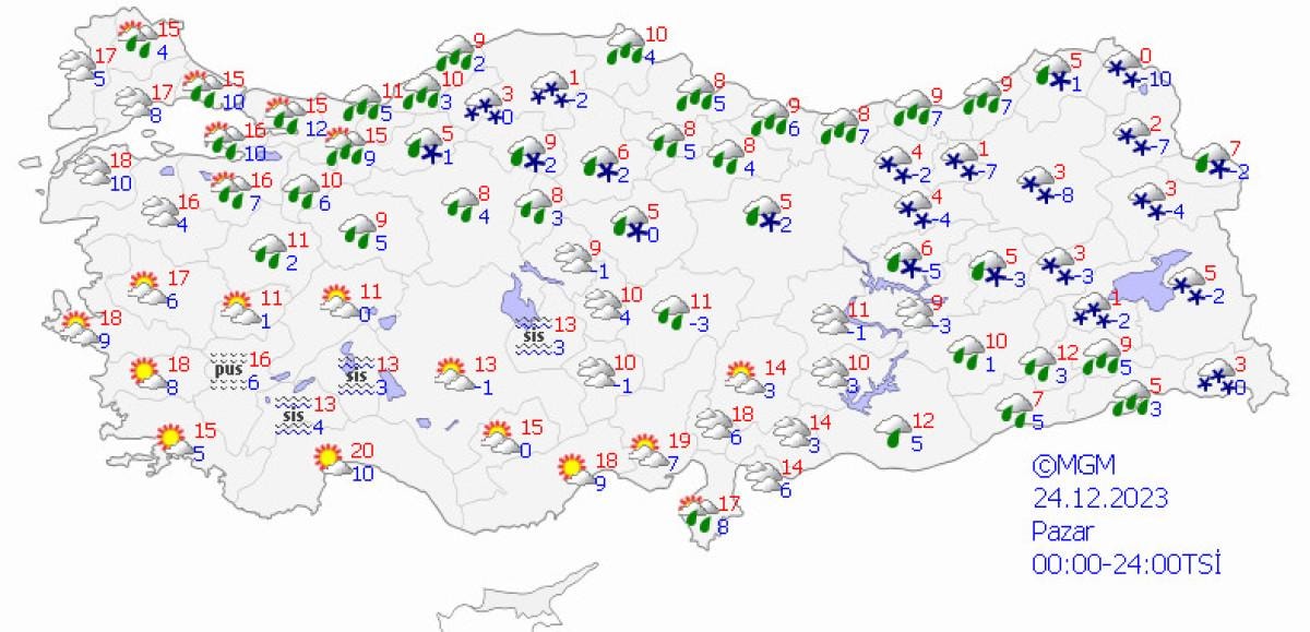 Ağrı, Ardahan, Artvin, Bartın, Bingöl, Bitlis, Bolu, Çankırı, Düzce, Erzurum, Giresun, Hakkari, Karabük, Kars, Kastamonu, Muş, Rize, Sinop, Trabzon, Van ve Zonguldak sarı uyarı verilen iller olarak sıralandı.