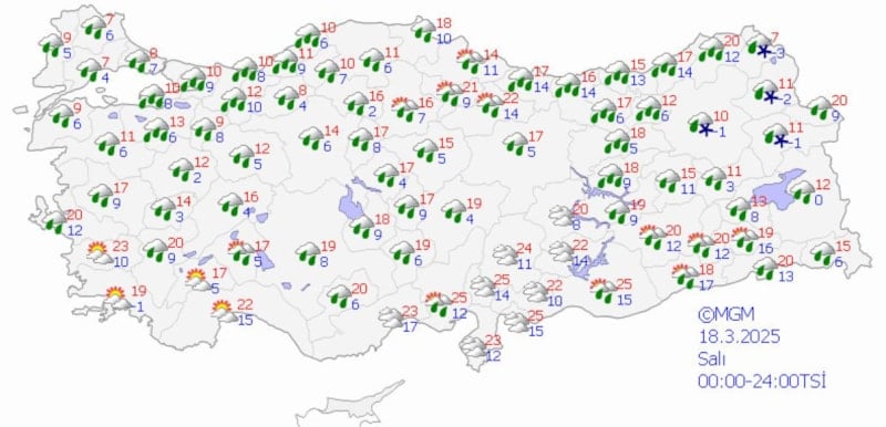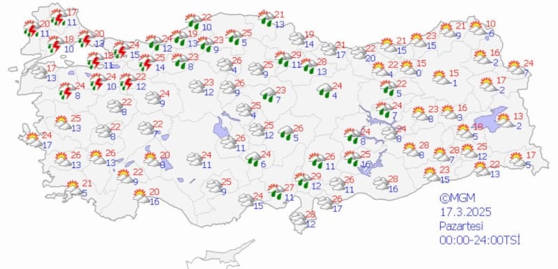 İstanbul Tahmin ve Erken Uyarı Merkezi'nden yapılan açıklamada öğle saatlerinden sonra Edirne ve Kırklareli için kuvvetli yağış uyarısında bulunulurken "Yapılan son değerlendirmelere göre 17 Mart 2025 Pazartesi günü öğle saatlerinden sonra Edirne ve Kırklareli'de yerel olarak kuvvetli sağanak ve gök gürültülü sağanak yağış beklendiğinden sel, su baskını, yıldırım, ulaşımda aksamalar, yerel dolu yağışı, yağış anında kuvvetli rüzgar gibi olumsuzluklara karşı dikkatli ve tedbirli olunmalıdır." denildi.