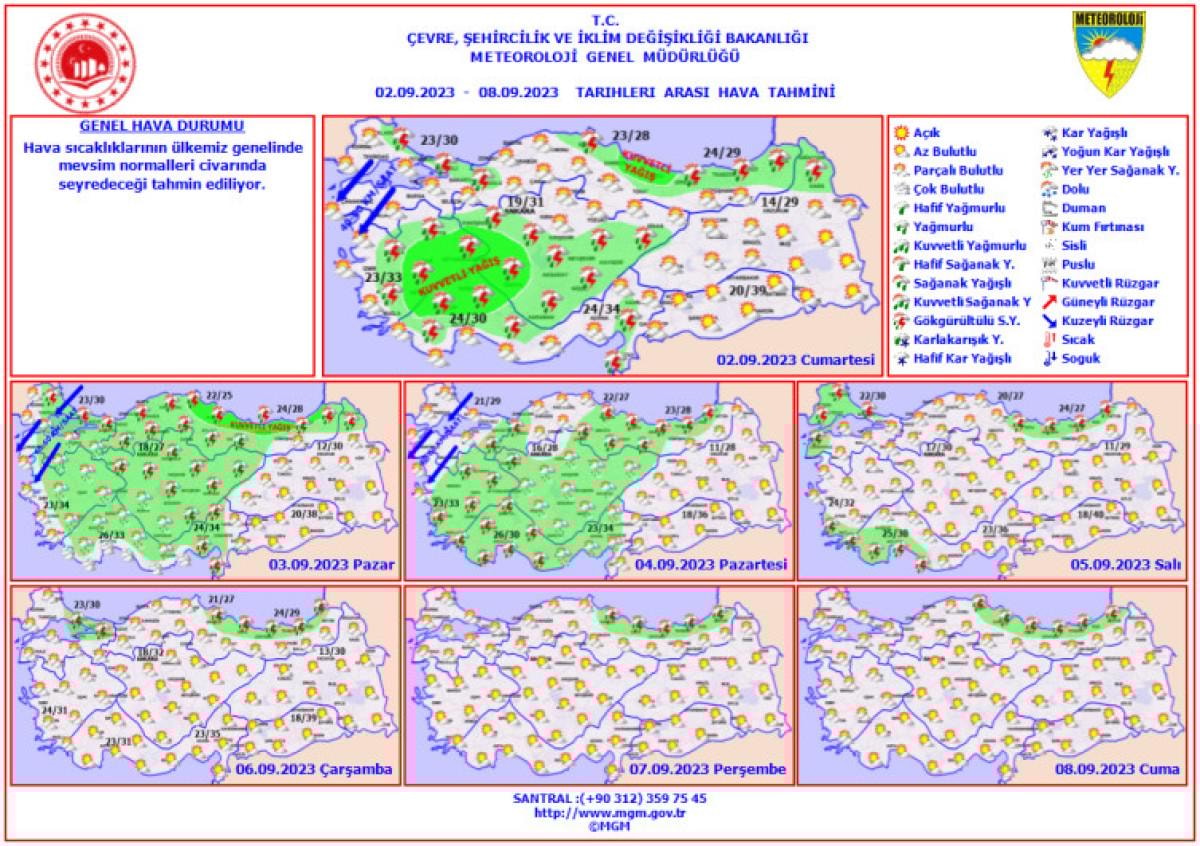 Cumartesi günü için batı iç bölgelerimizde yani iç Ege, Batı Akdeniz'in iç kesimleri ve İç Anadolu'nun batısında öğle saatlerinden sonra zaman zaman kuvvetli yağışlar göreceğiz. Cumartesiyi pazara bağlayan gece ve pazar günü de Orta Karadeniz, Samsun, Ordu çevrelerinde yine kuvvetli yağış beklentimiz var. Bu bölgelerde yaşayanların özellikle bu yağışa karşı dikkatli olmasında fayda var.