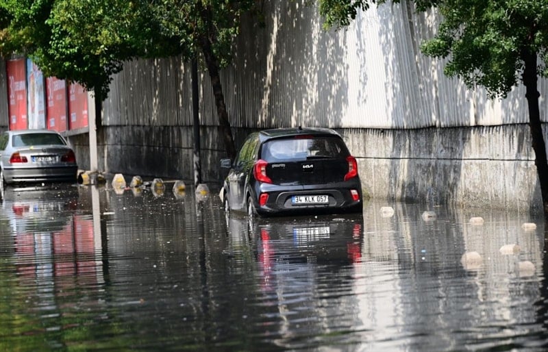 Zeytinburnu Maltepe Mahallesi'nde yağış nedeniyle biriken su birikintisinde bir araç mahsur kaldı.