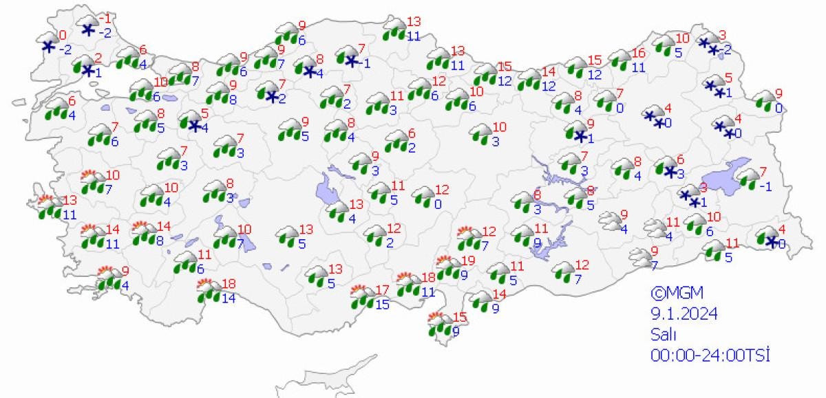 MGM İstanbul Bölge Tahmin ve Erken Uyarı Merkezi’nden yapılan açıklamada Trakya ve Marmara Bölgesi'nin Balkanlar üzerinden gelecek soğuk ve yağışlı sistemin etkisi altına girmesinin beklendiği belirtilerek, "Buna bağlı olarak öncelikle bölgemizde sağanak ve yer yer gök gürültülü sağanak şeklinde başlayacak yağışların zamanla tüm bölgede etkili olacağı tahmin ediliyor. 9 Ocak Salı gününden itibaren hava sıcaklıklarındaki azalmayla birlikte yağmur, zamanla Trakya'da ve İstanbul'da karla karışık yağmur, bölgemizin kuzeyinde ve yüksek kesimlerinde hafif kar yağışı şeklinde olması bekleniyor." ifadelerine yer verildi.