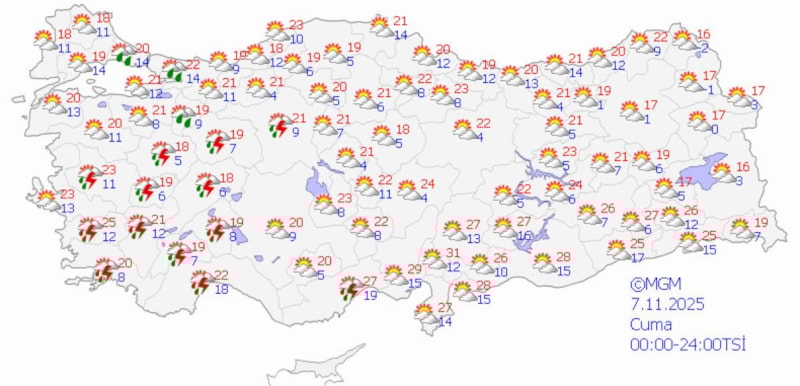 Yağışların cuma günü de devam etmesi beklendiği belirtilerek, hafta sonu sıcaklıkların yeniden yükseleceği açıklandı.