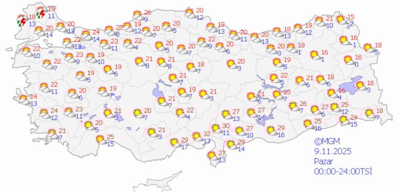 Öte yandan, sabah ve gece saatlerinde Marmara, Batı ve Orta Karadeniz’in iç kesimleri ile Kuzey Ege kıyılarında pus ve sis beklendiği öğrenildi.