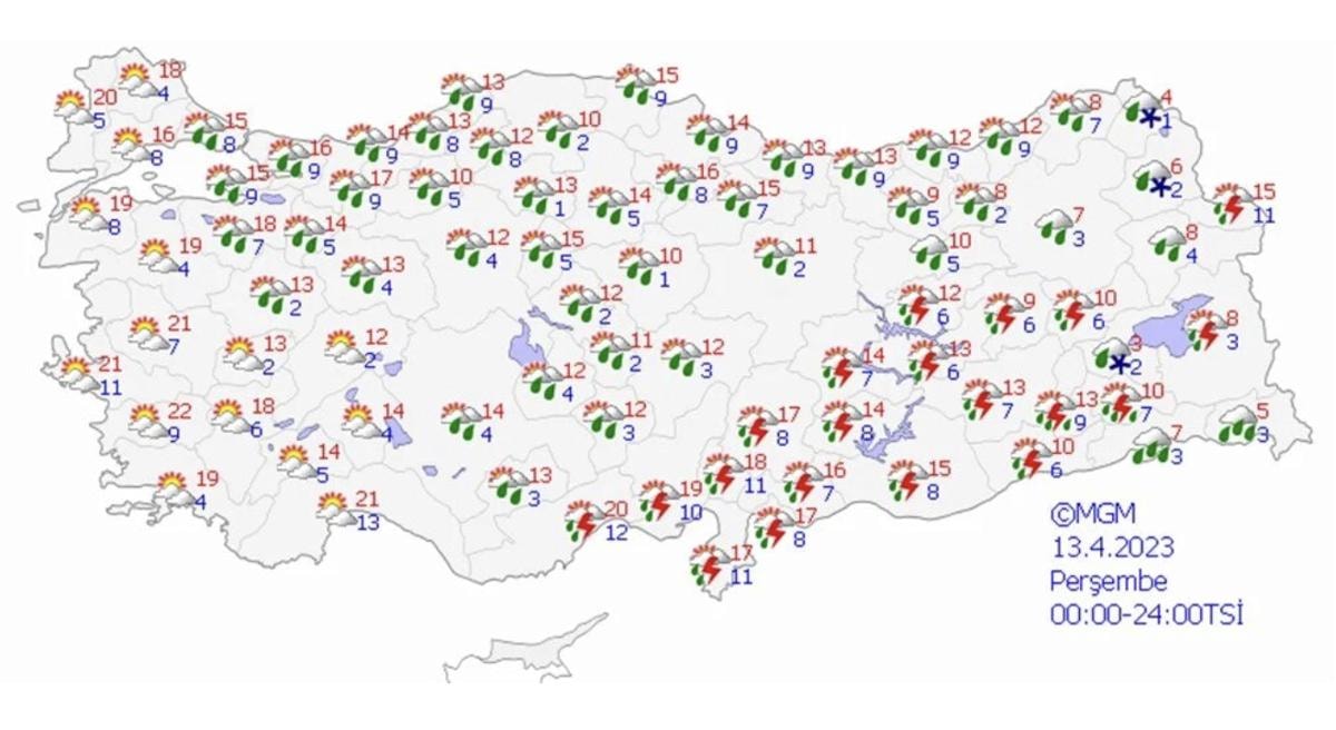 Meteoroloji Genel Müdürlüğü, günlük hava tahmin raporunu yayınladı.