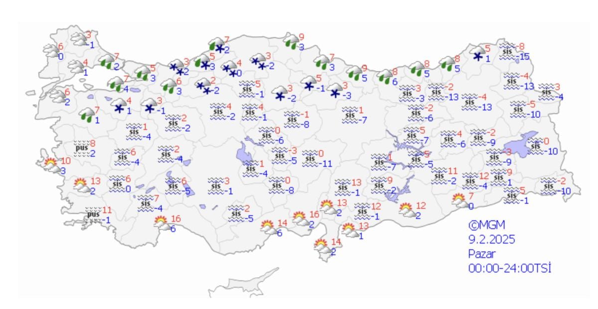 İç ve doğu kesimlerde buzlanma ve don ile birlikte sabah ve gece saatlerinde pus ve yer yer sis bekleniyor.