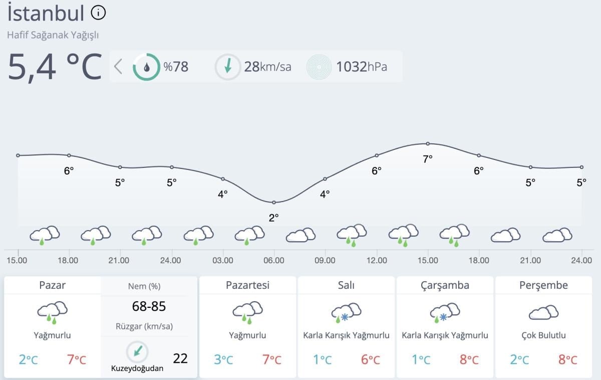 Çok bulutlu, sabah saatlerinde hafif yağmurlu, iç kesimleri karla karışık yağmur ve hafif kar yağışlı