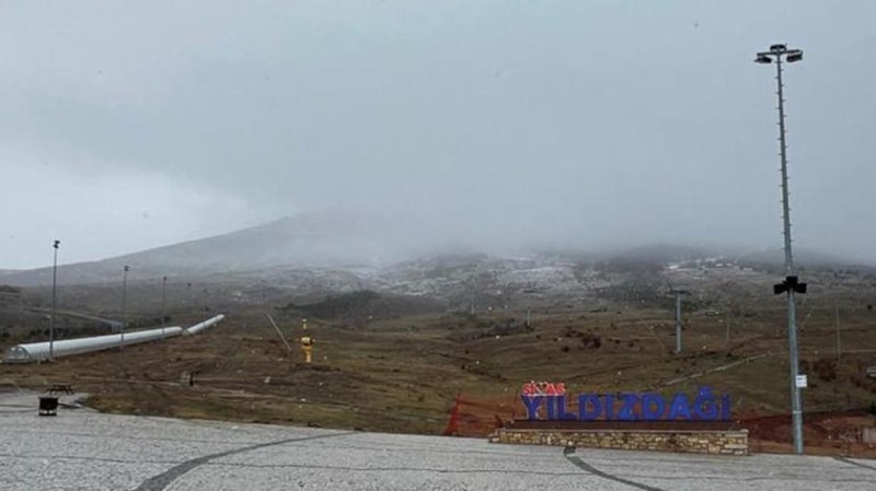 Sezon hazırlıklarının devam ettiği kayak merkezinde karın ardından Yıldız Dağı'nın zirve kısımları kısmen beyaza büründü.