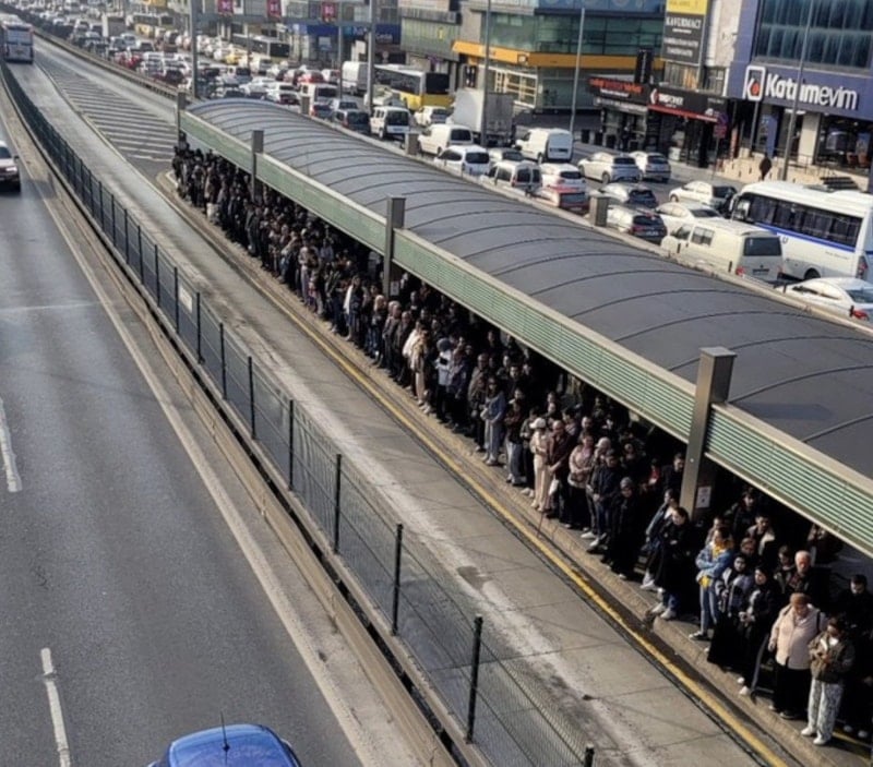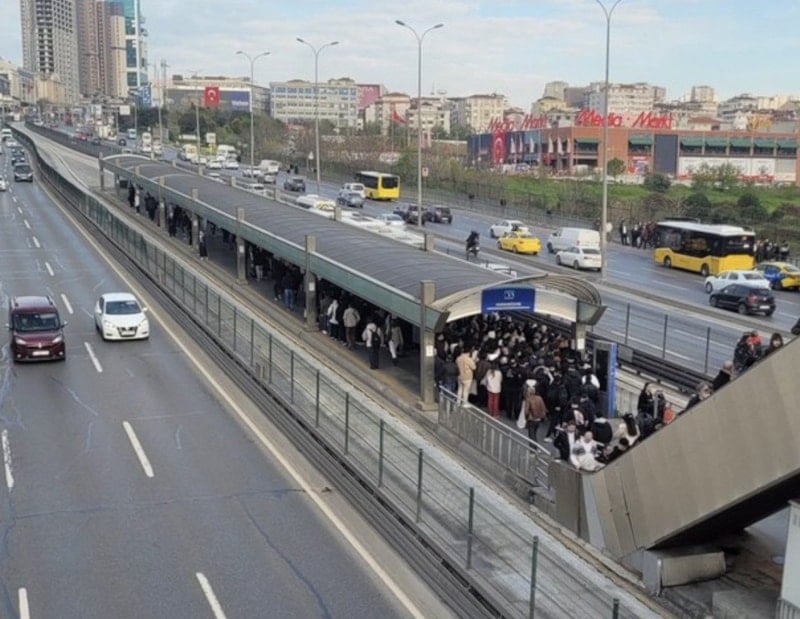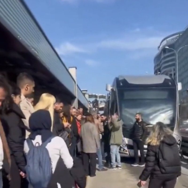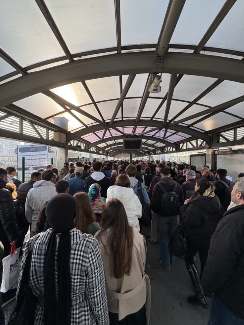 Beylikdüzü'nde metrobüs hattında sabah saatlerinde başlayan yoğunluk, duraklarda izdihama ve vatandaşların tepkisine neden oldu. Bir kadın metrobüsün önünü keserek "Her gün aynı çile" dedi.