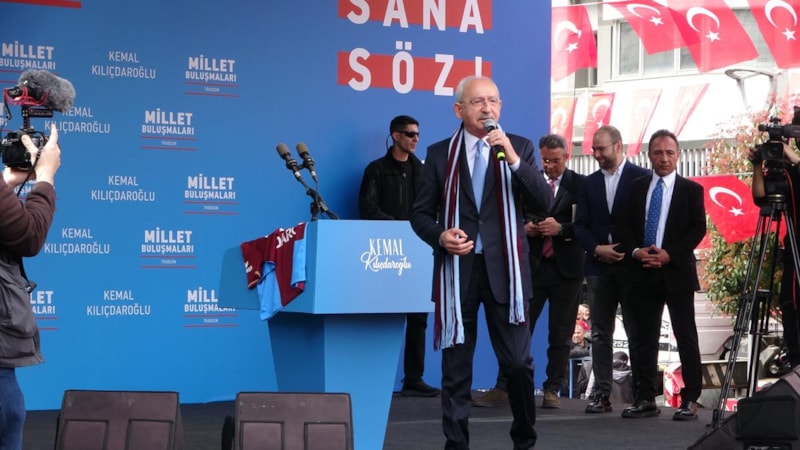 Millet İttifakı Cumhurbaşkanı adayı Kılıçdaroğlu, "Trabzon sporuyla dünya markası. Herkesin saygıyla andığı, söz ettiği güzel ve görkemli bir kent Trabzon. Trabzonlunun geliri 1300 dolar düştü. Çok sayıda genç büyük kentlerin varoşlarında iş arar haline geldi. 100 yıl nasip ederse Mustafa Kemal'in hayalini gerçekleştireceğiz; demiryolunu Sarp'tan geçireceğiz. Bunu yapacağız, sadece Trabzonlu değil, bütün Karadeniz görecek." diye konuştu.