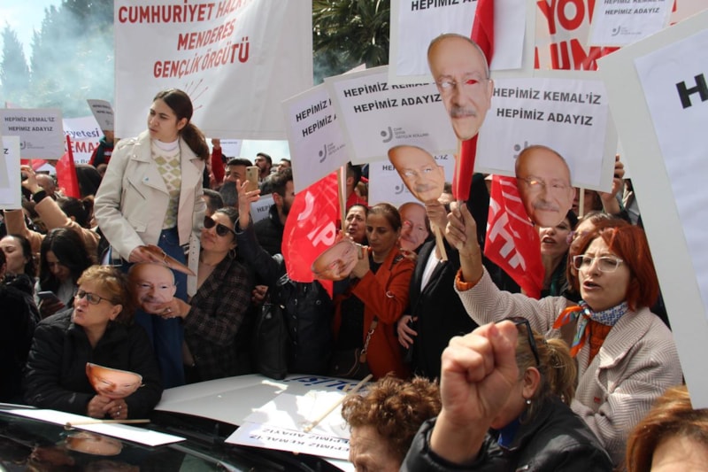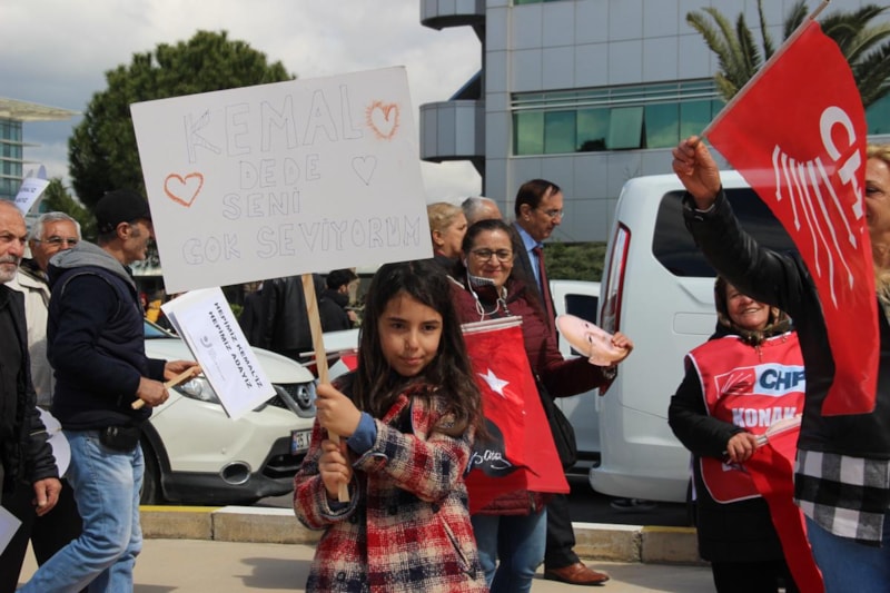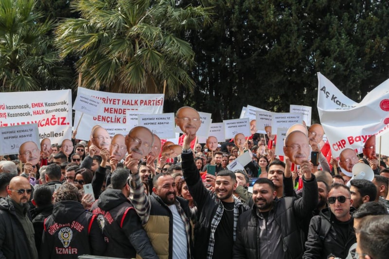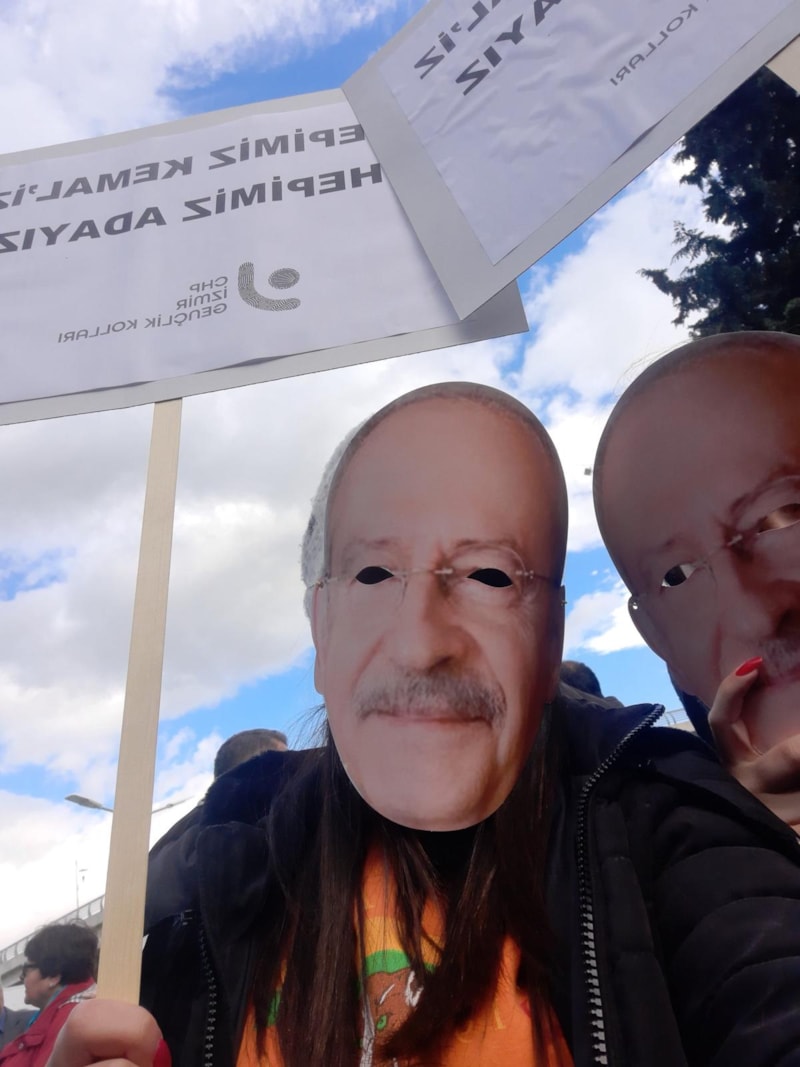 CHP Lideri ve 6'lı masanın Cumhurbaşkanı Adayı Kemal Kılıçdaroğlu, İzmir'de partili kalabalık tarafından karşılandı. Partililerin Kılıçdaroğlu’nun fotoğrafının basıldığı kağıt maskeleri tutmaları ise dikkat çekti.