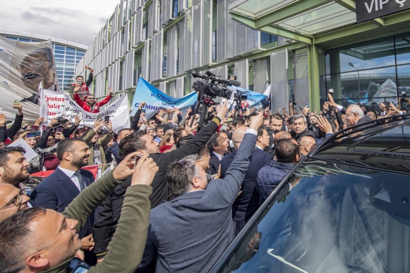 Kemal Kılıçdaroğlu'nun çıkış kapısından aracına doğru yürüdüğü esnada, kalabalıktan dolayı küçük çaplı kargaşa yaşandı.