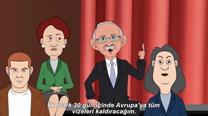 Ayrıca animasyonda Kılıçdaroğlu'na açıkça desteğini ilan eden HDP'nin ortaklarla ilişkileri, Kılıçdaroğlu'nun her şeye "yardımcı atama" konusu, İmamoğlu-Yavaş bilinmezliği, küçük ortakların büyük kavgası işlendi.